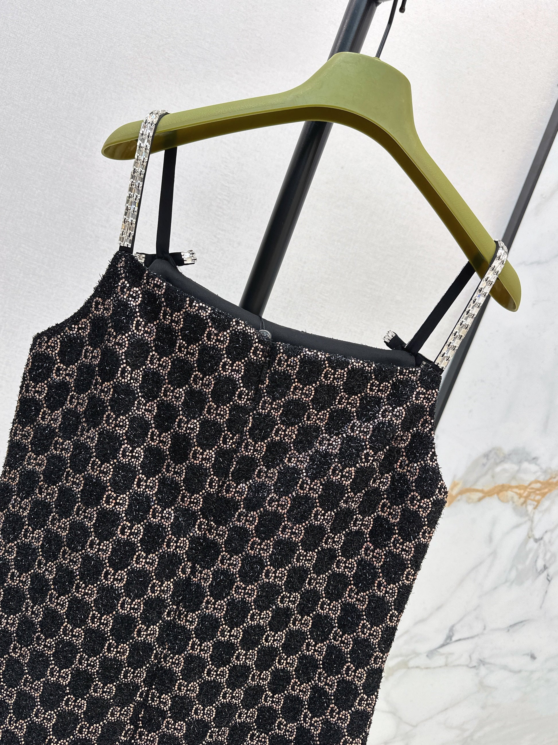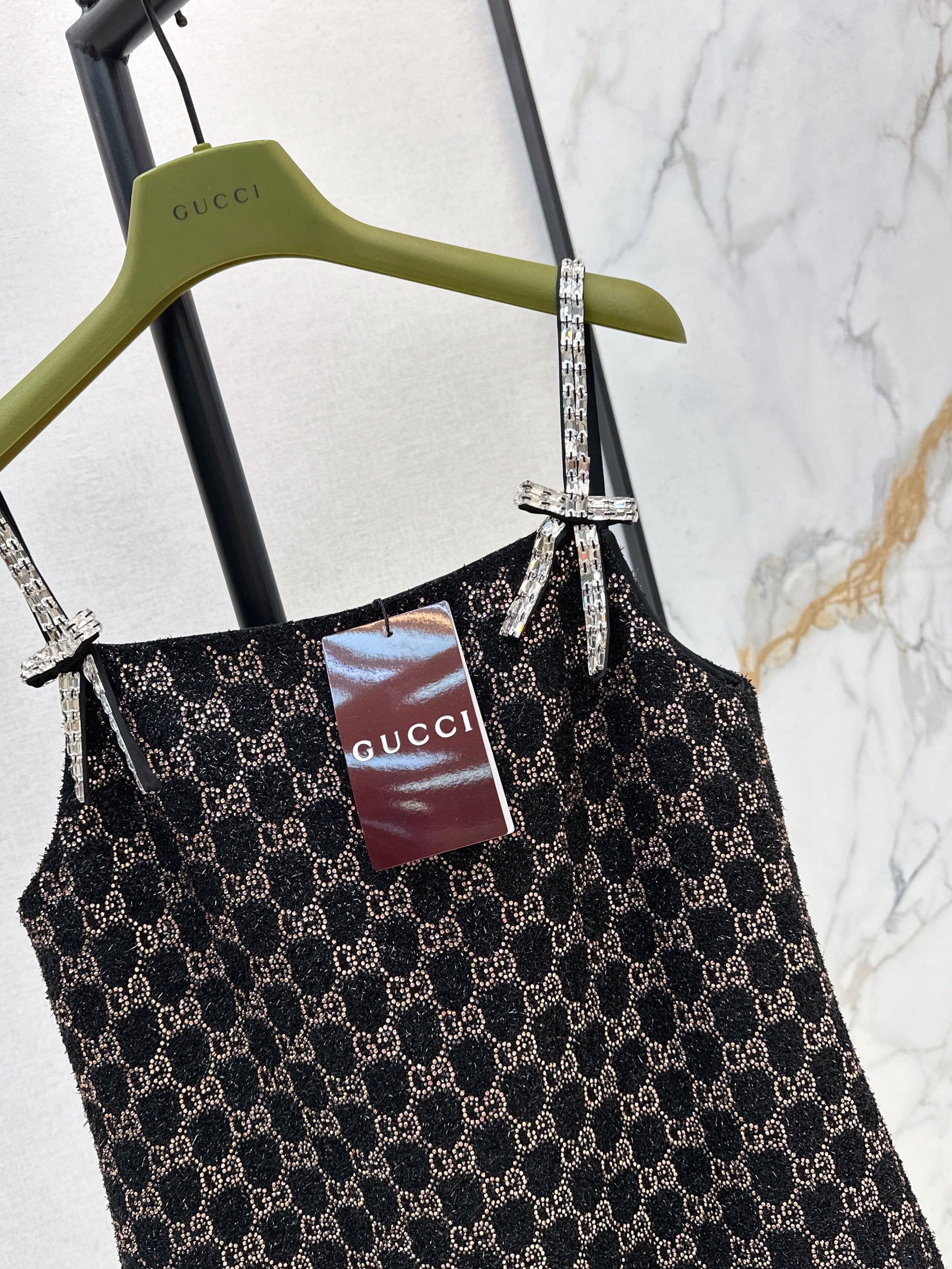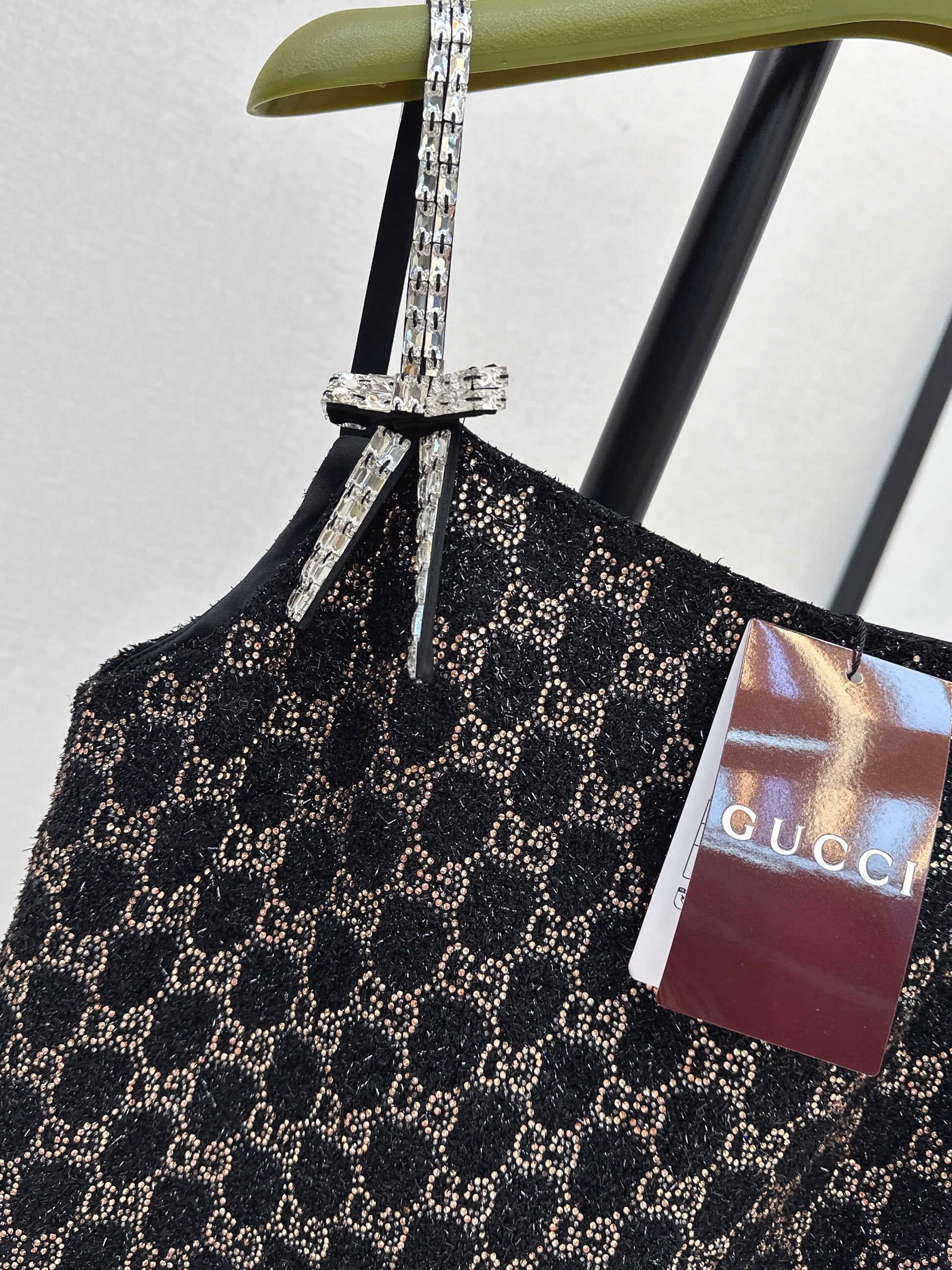 Guc NEW dimon crystal diamond woven slip dress